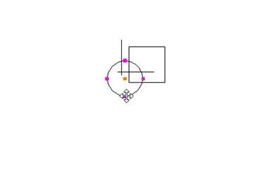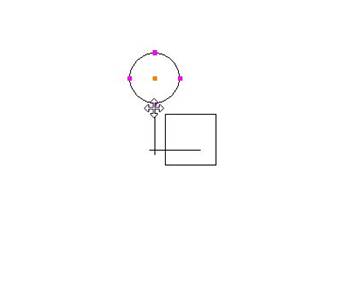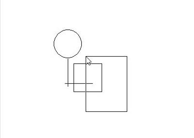 図形を移動させるには、マウスでドラッグアンドドロップします。つまり、摘まんで離す。円の下を摘まんで縦線の上に移動してみる。