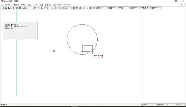 この寸法は何を示している!?本CADは寸法も図形のひとつと考えました。なので、他の図形にくっ付けて使用します。